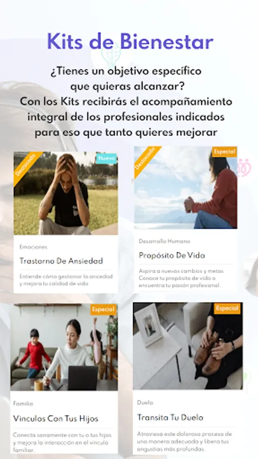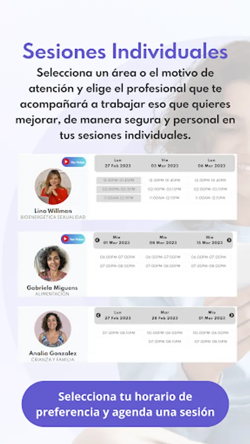 - Los mejores especialistas: El usuario decide su horario y selecciona el acompañamiento de especialistas con alta trayectoria y experiencia.