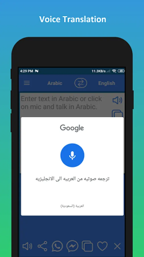 ✓ 3. Voice typing in Arabic. Voice Translation from Arabic to English.