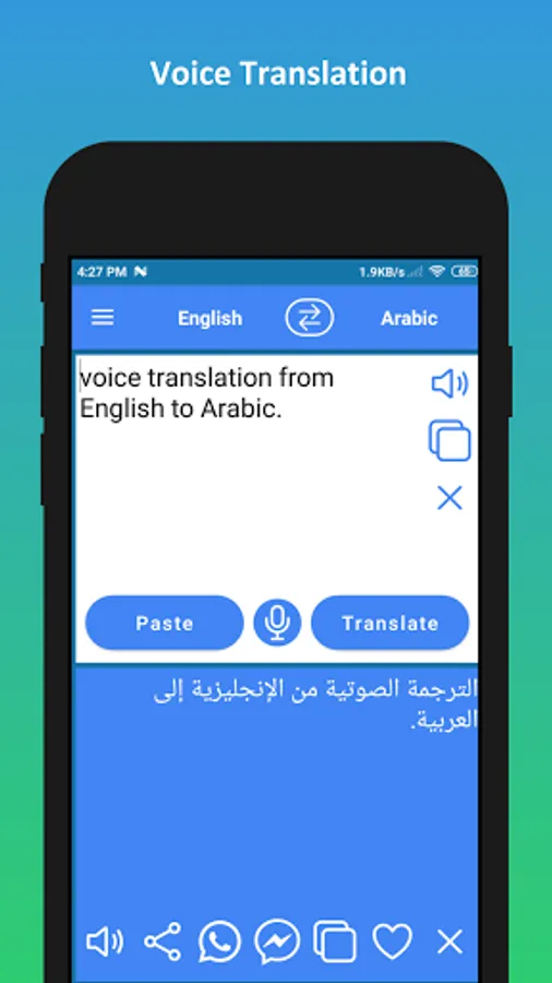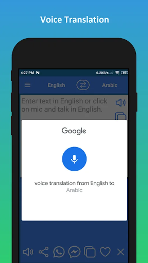 ✓ 4. Voice typing in English. Voice Translation from English to Arabic.