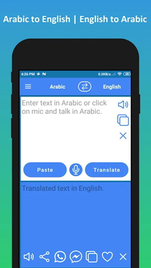 A) Click on 'Paste' button and our Arabic to English Translator app will translate the text.