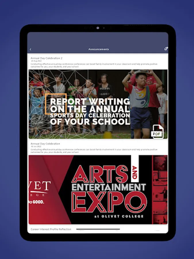 It is an application used for” Reborn’s” students & parents to follow up “KG’s” activities: