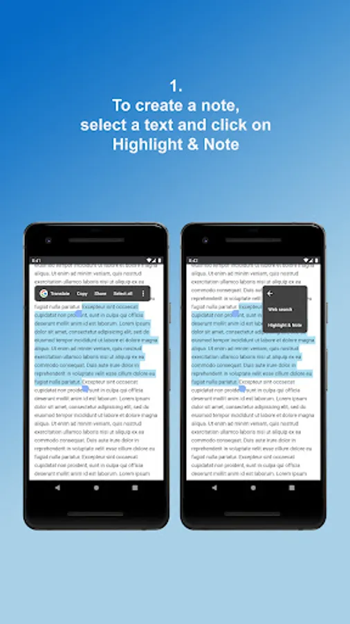 If you want to create a note of a text in some different apps like notepad apps, sometimes the name of the app may not show up in copy - paste menu bar. At this point, you can also use share button. After selecting text and pressing share button, select the Highlight & Note app. And the rest is the same.