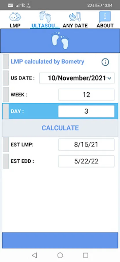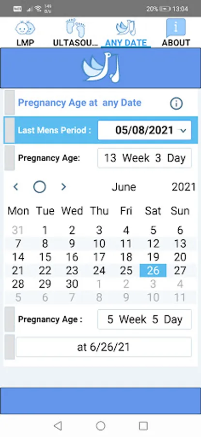 Useful calculator to calculate the gestational age by entering the last menstrual date and to find out what pregnancy age it is on certain days. It can be used in daily medical practice.