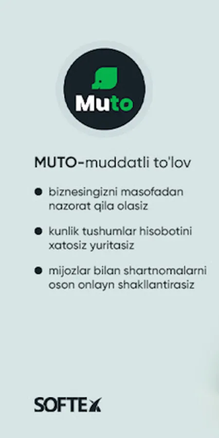 MUTO- muddatli to'lov (рассрочка) usuli bilan savdo qiluvchi do'konlarga mo'ljallangan dastur orqali SIZ