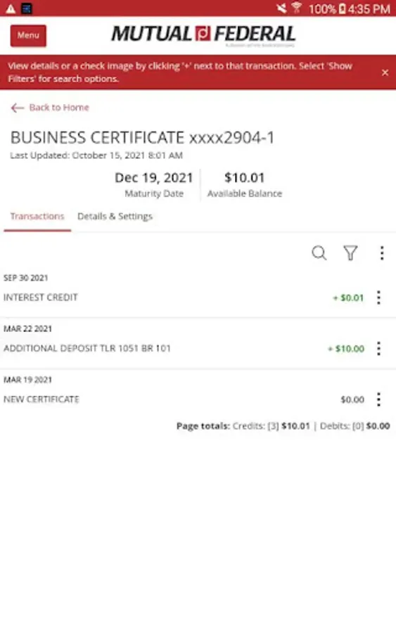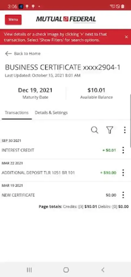 With the Mutual Federal mobile app, it's easier than ever to bank on the go, anytime, anyplace. Our app provides a convenient unified user experience, meaning one app for your personal and business accounts. View account balances and history, transfer funds, deposit checks, pay bills and people, find our locations and ATMs, and contact a member of our team with the savviest mobile technology right at your fingertips! Get started on using our app today! We've made this better by offering it FREE of charge.*