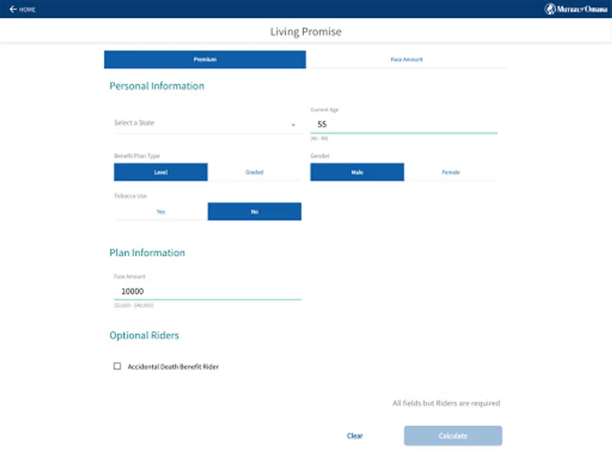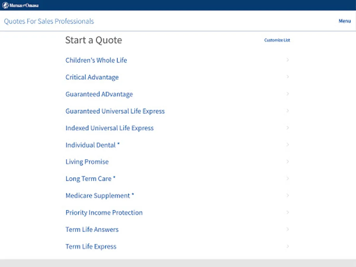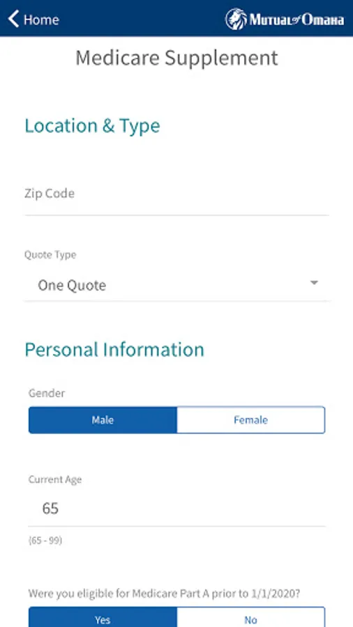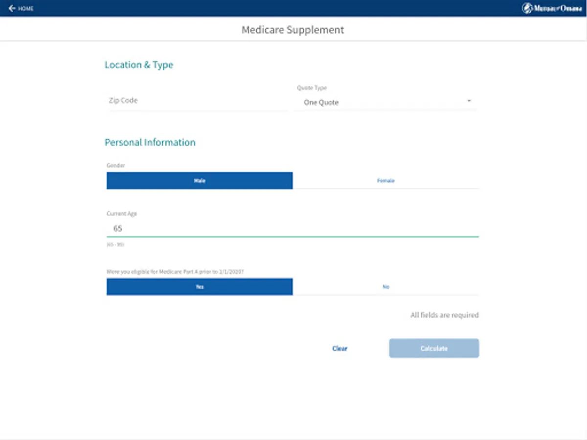 Mutual of Omaha quoting application to be used by agents/producers only for the purpose of obtaining a quote for insurance.