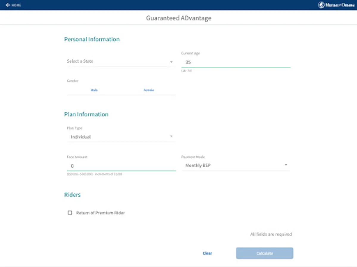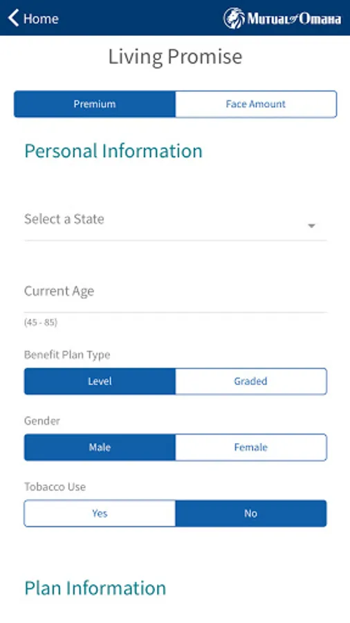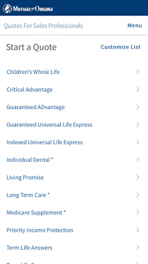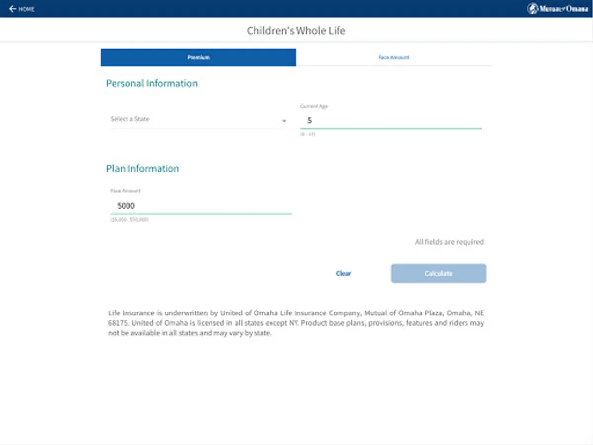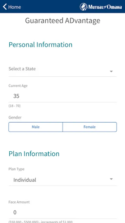 Mutual of Omaha quoting application to be used by agents/producers only for the purpose of obtaining a quote for insurance.