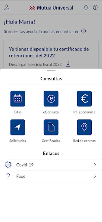 -Access the Private Patient Area where you can quickly: consult your complete medical history with Mutua Universal, see the details of the economic benefits received, download medical reports and diagnostic tests, manage your medical appointments and download your personal income tax certificate . Access codes are required to access the Private Patient Area, which can be requested at any Mutua Universal healthcare center.