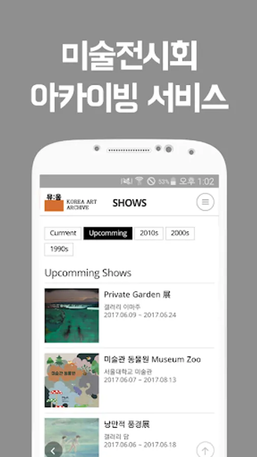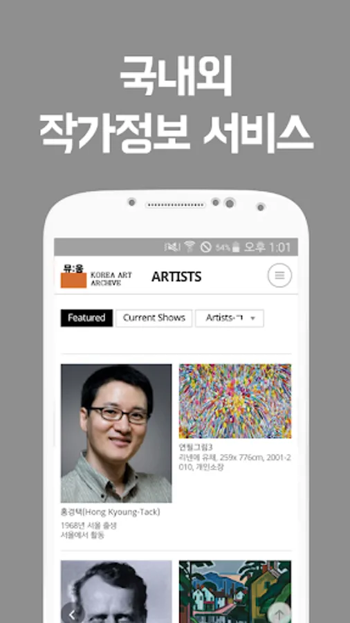 It introduces exhibits and artists by constructing the innovative and convenient on-line services and shows domestic and international exhibition review, art news,