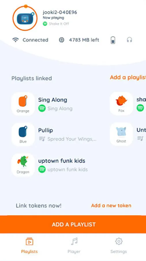 Grown-ups create playlists from Spotify (or their own MP3) and associate them with a Jooki figurine in a few clicks with the Jooki app. Next, kids just place that figurine or token on Jooki to start the playlist… or lift it to pause, stop or change.