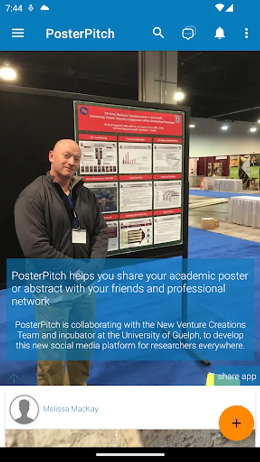 PosterPitch App give researchers ability to share their upcoming event of their congress presentation where their work has been accepted. The app has the ability to share the image of the presenter at poster session and the e-poster in a pdf version.