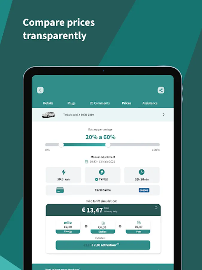 Miio app allows you to comfortably charge your electric vehicle in Portugal, France and Spain, get to know the final price beforehand and interact with the community.