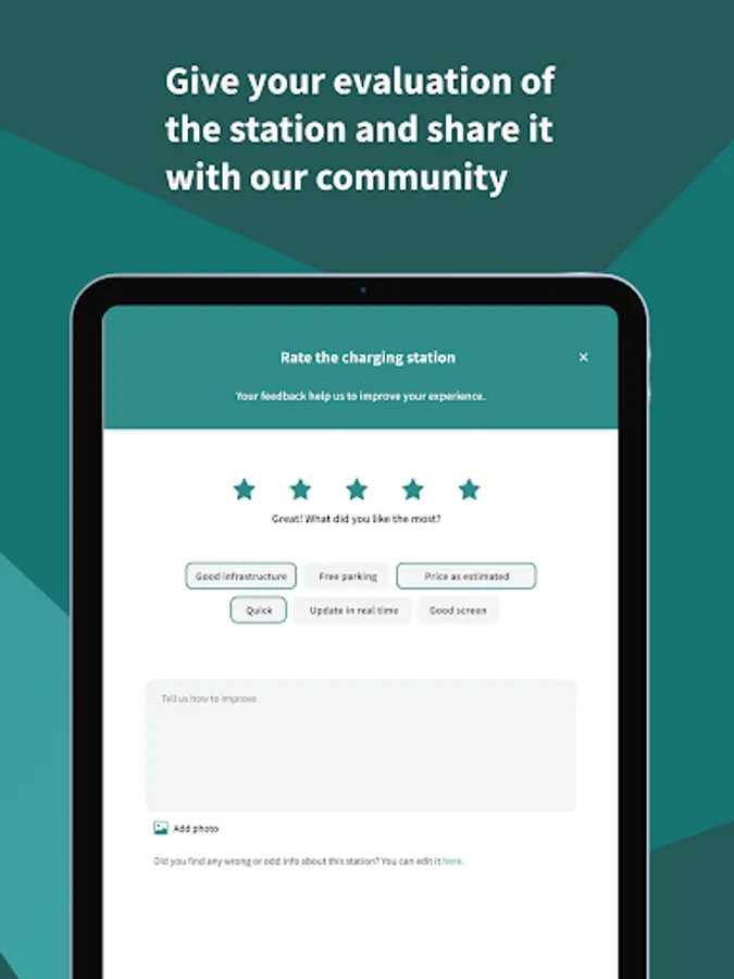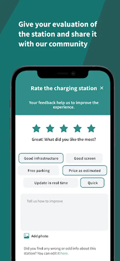 - Comment, rate and add photos to charging stations;