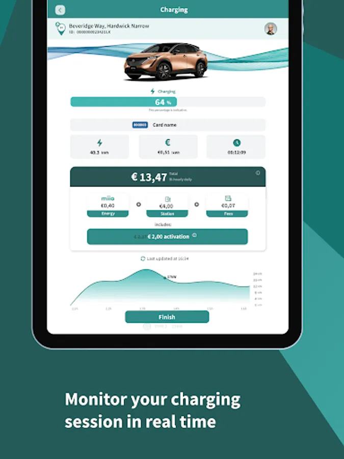 - Monitor your charging session from distance and in real time, with smart alarms;