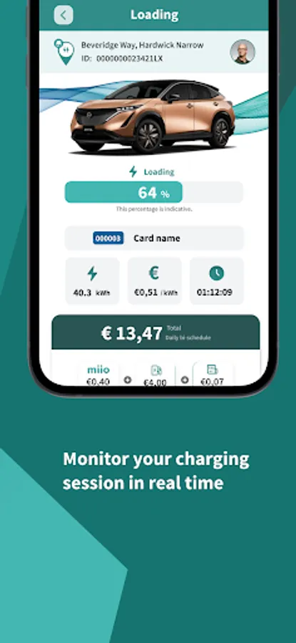 - Charge your vehicle through the app or physical card;
