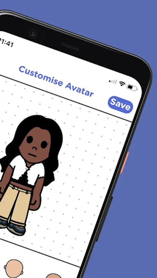 -Choose from a wide selection of clothes and features to customize the avatar to your desire.