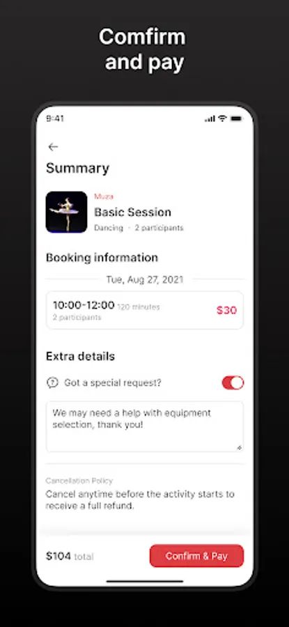 - Make and manage your bookings of sports activities and equipment