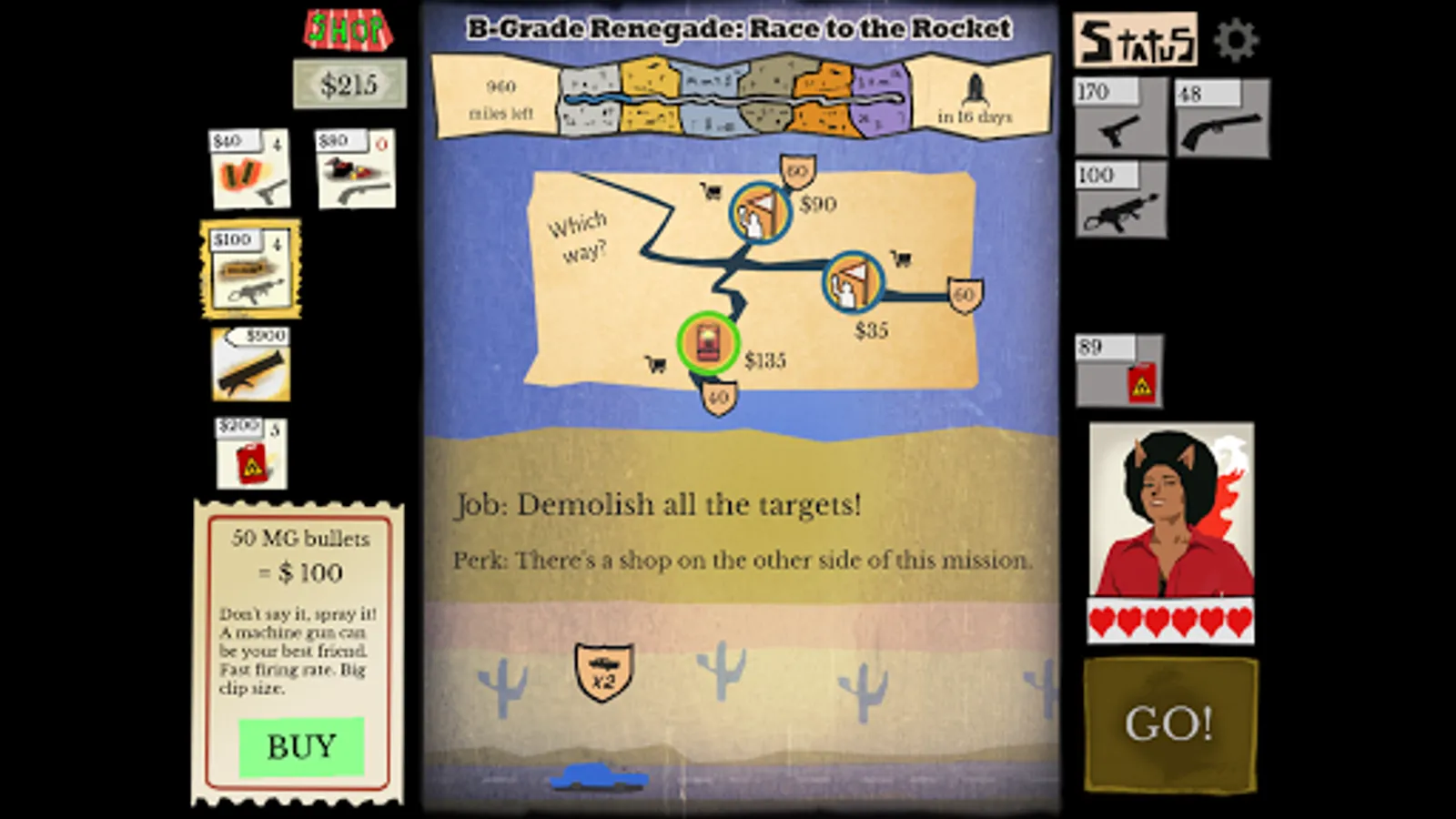 "B-Grade Renegade: Race to the Rocket" is a strategic action roguelike with procedural level generation and permadeath!