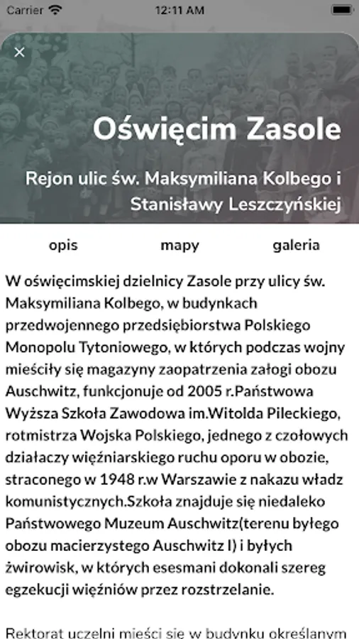 This application was created on the initiative of the director of the Museum of the Memory of the Residents of the Oświęcim Land in Oświęcim as part of a project in which it was co-created by students of schools run by the Oświęcim Poviat.