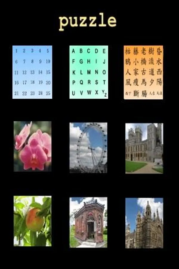 ●進入遊戲之前,首先選擇你喜歡的智慧盤面的樣式,有數字、英文字母、詩詞語文及圖片等12種樣式。