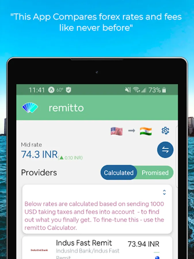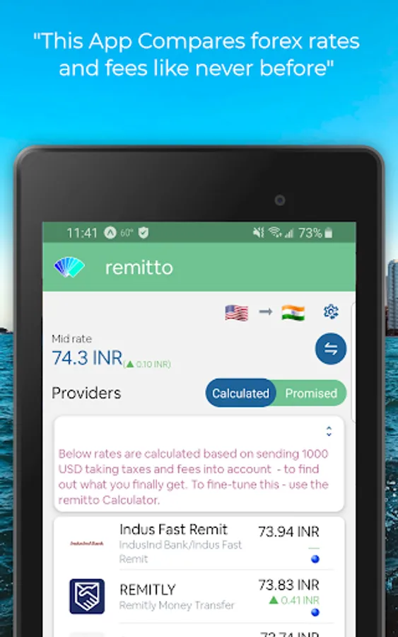 Remitto app provides in-depth detail and comparison of international money transfer rates and fees among providers like a marketplace. Forex companies and banks often make money by either marking down exchange rates from actual mid-market rates or by attaching additional fees to the transaction.