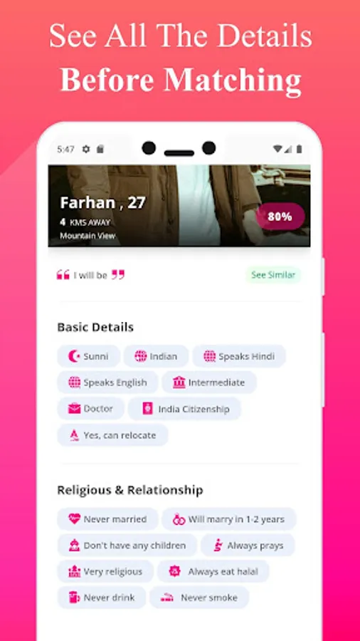 On Muzishq, every profile is a real profile, and there are no fakes and no bots. So you will be interacting with real people who are looking for a life partner for marriage.