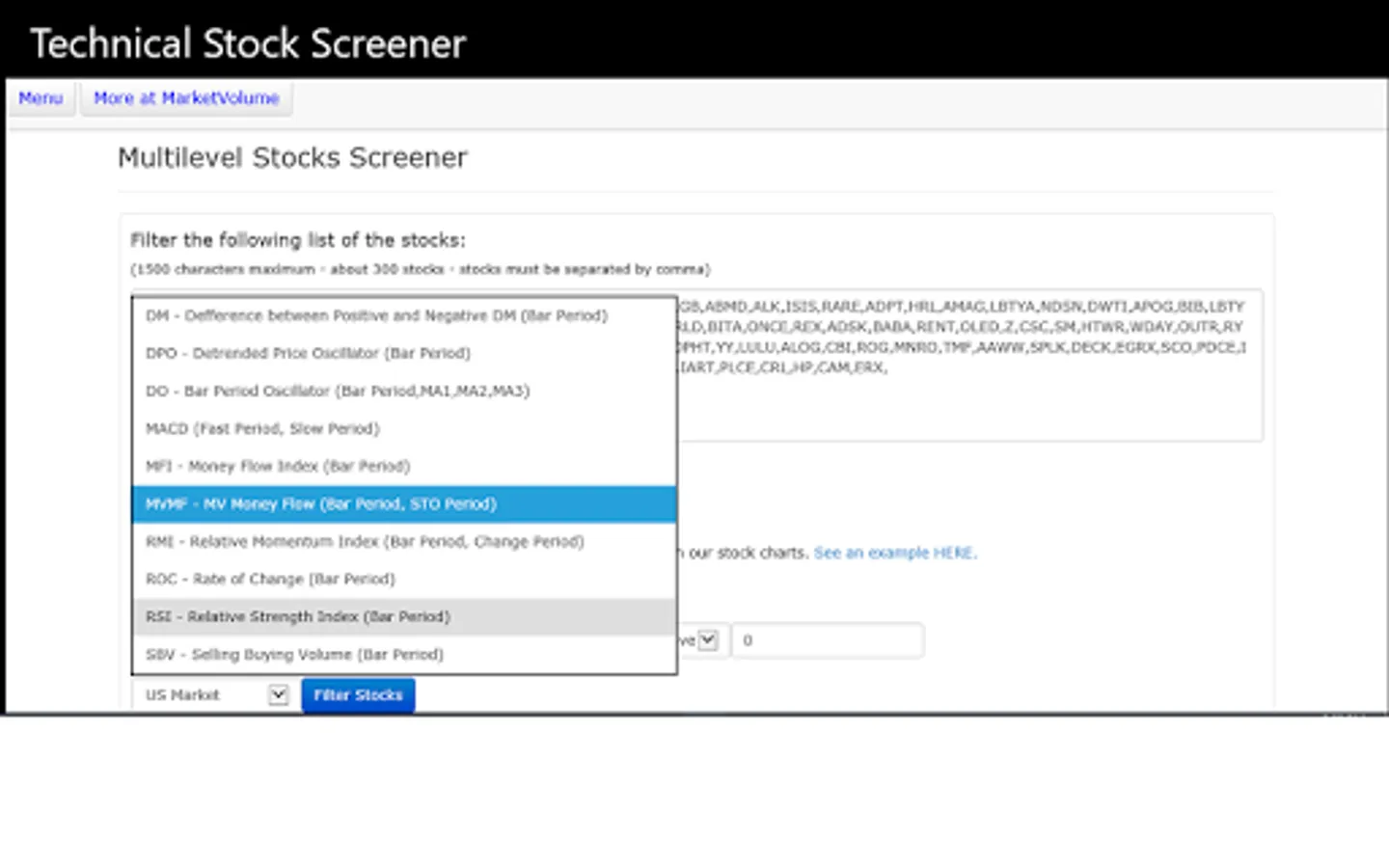 The scan results could be passed to multilevel filtration tool which could be used unlimited number of times until select stock list is filtered to the desirable number of stocks.