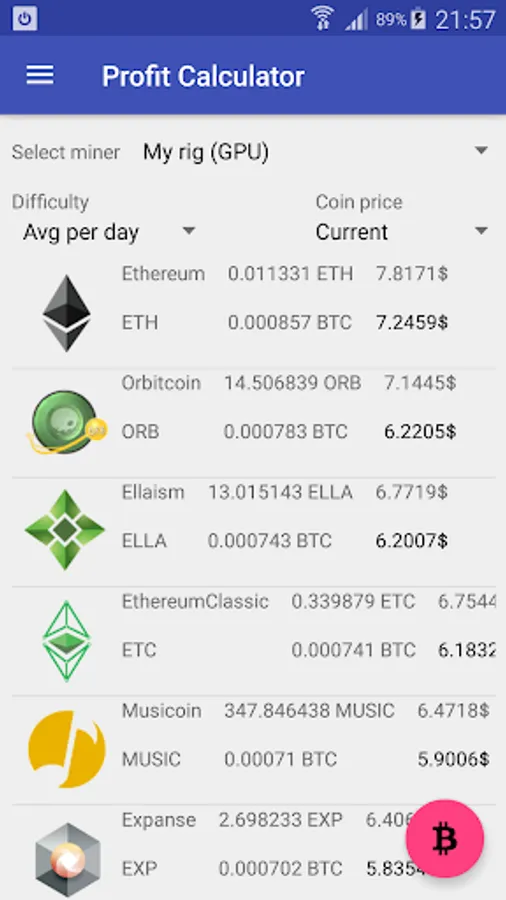 The Profit calculator is application for Android based on devices providing profit calculating function for cryptocurrency mining.