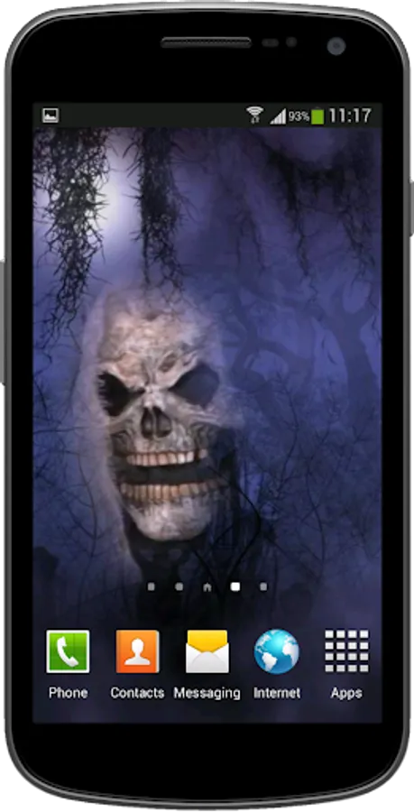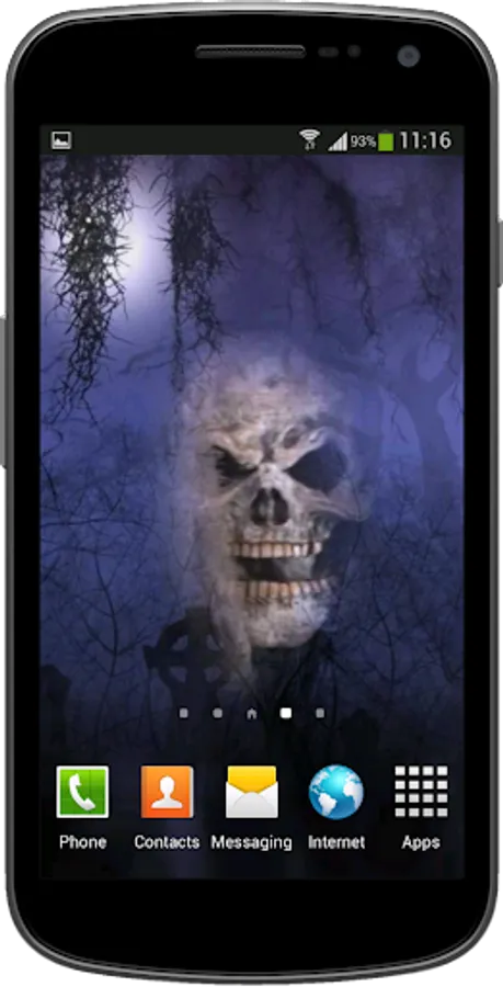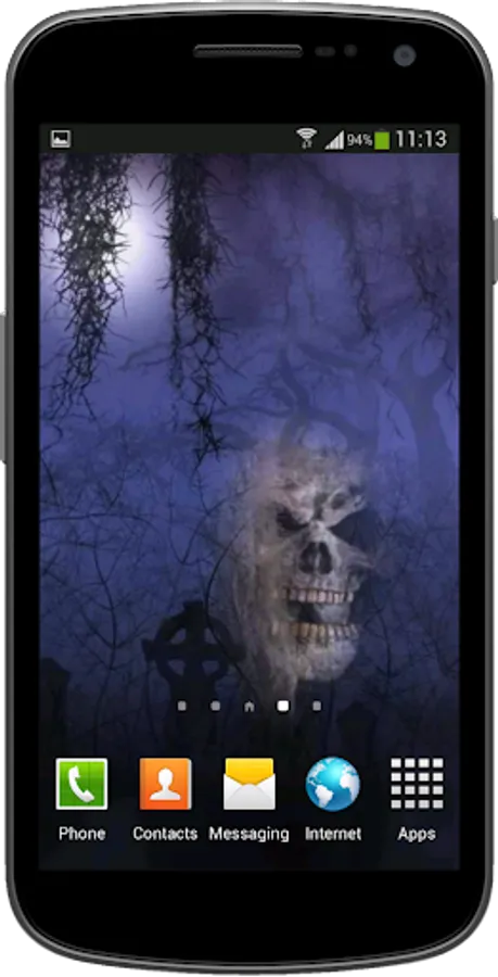 If you like horror, install this creepy, scary and grim animated live wallpaper of an evil ghostly skull floating on your phone screen.