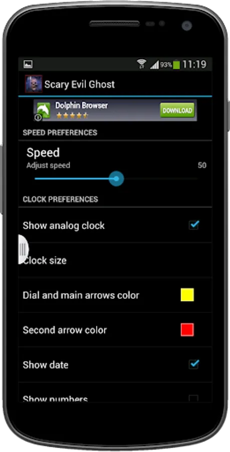 - Option to choose the clock color, to show / hide date, to show / hide the clock numbers, clock size etc.
