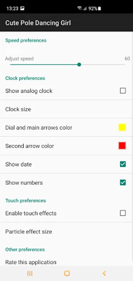 - Option to choose the clock color, to show / hide date, to show / hide the clock numbers, clock size etc.
