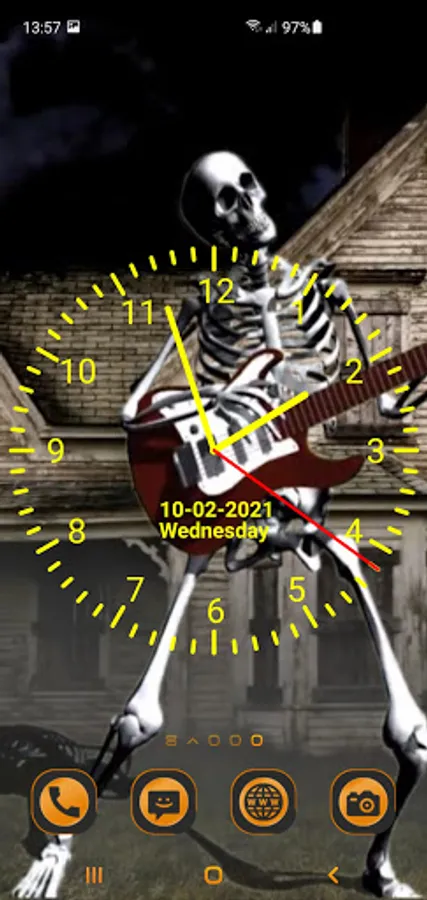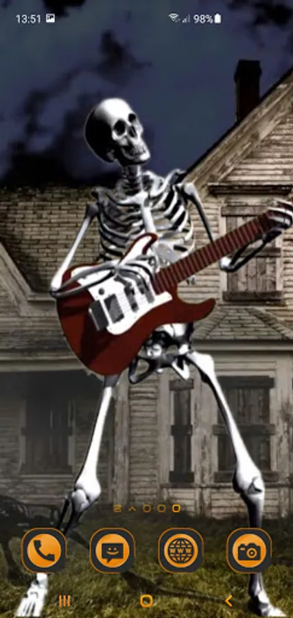 Animated, funny, skeleton musician on your phone screen around the clock.