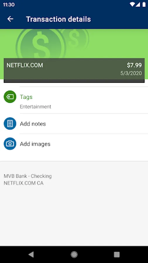 Keep your transactions organized by allowing you to add tags, notes and photos of receipts and checks.