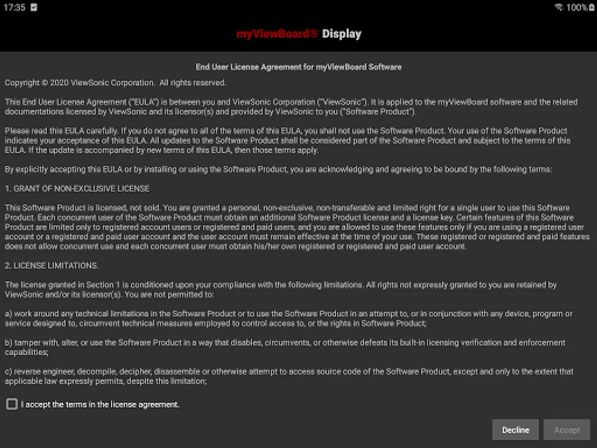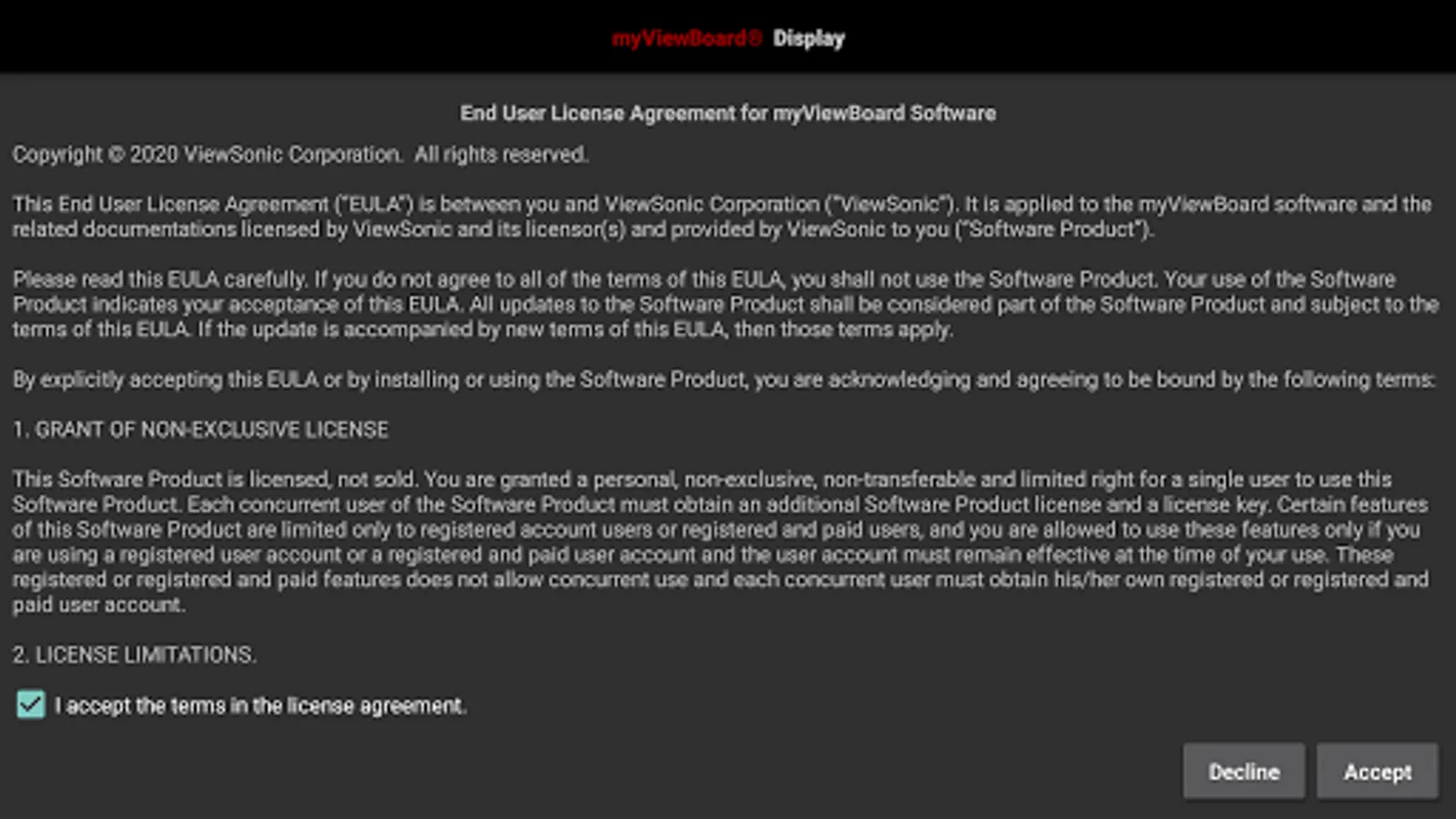 myViewBoard™ Display allows users to share their screens wirelessly to any Android 6 or above supported device. Be it an Interactive Flat Panels (IFP), Wireless Presentation Displays (WPD), or digital sign. myViewBoard Display comes preinstalled on selected ViewSonic® hardware, like our ViewBoard™ and WPD series, but can also be installed manually on any device such as a Chromebox that runs Android 6 or higher.