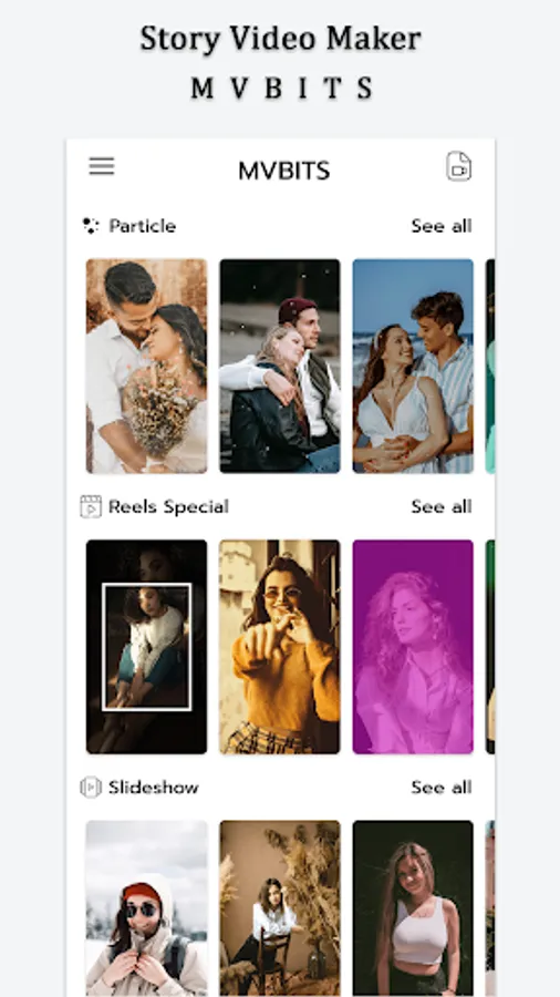 MVBITS is used to create short video for social media. Story video maker is app where you can create amazing & beautiful animated video.