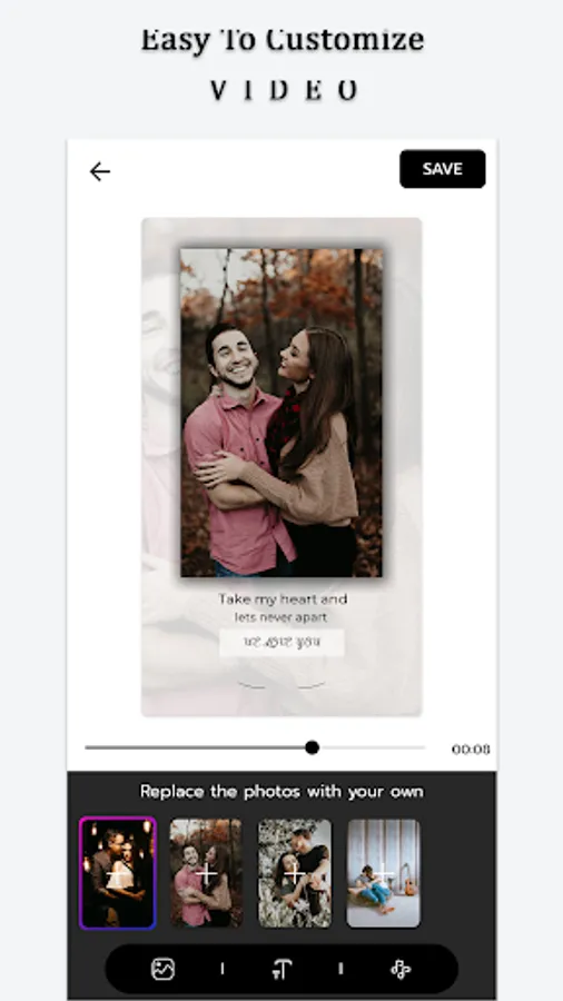MVBITS provides you to lots of animated video templates. Video templates available with text effect & music 🎼. MVBITS allows you to customize your story video and create your own wonderful video. Easy to customized photos, music and text with your own.❤️
