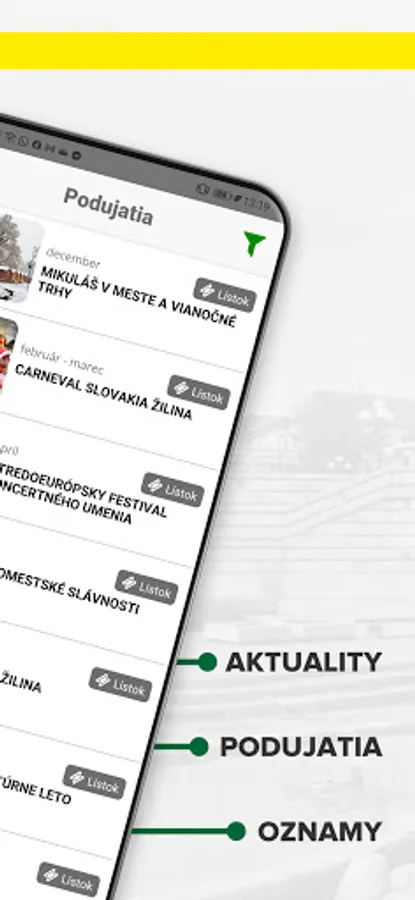 The official mobile application of the city of Žilina has the task of connecting the citizen with the city. You will get current information directly from the municipality. Here you will find quick news, invitations to events that you can schedule or buy a ticket online, get clear life situations, announcements of the city and organizations, emergency contacts, types of trips, current traffic information in the city, information about excavations, outages and many more. Furthermore, you will be able to vote interactively in polls, express your opinion on various topics, vote for a participatory budget, report suggestions for improving your city and you will also be able to use the neighborhood exchange. The application is smart connected to various Žilina city systems for up-to-date information of citizens.