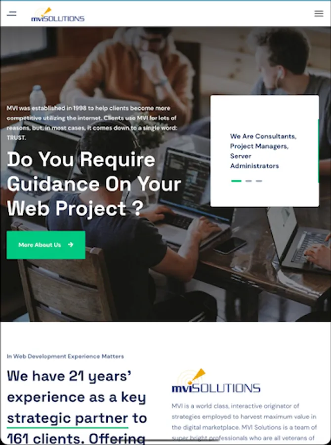 MVI Solutions is a team of super bright professionals who are all veterans of the Information Technology industry. We bring the perfect mix of web technologies, best practices and cutting-edge techniques to your new or developing business.