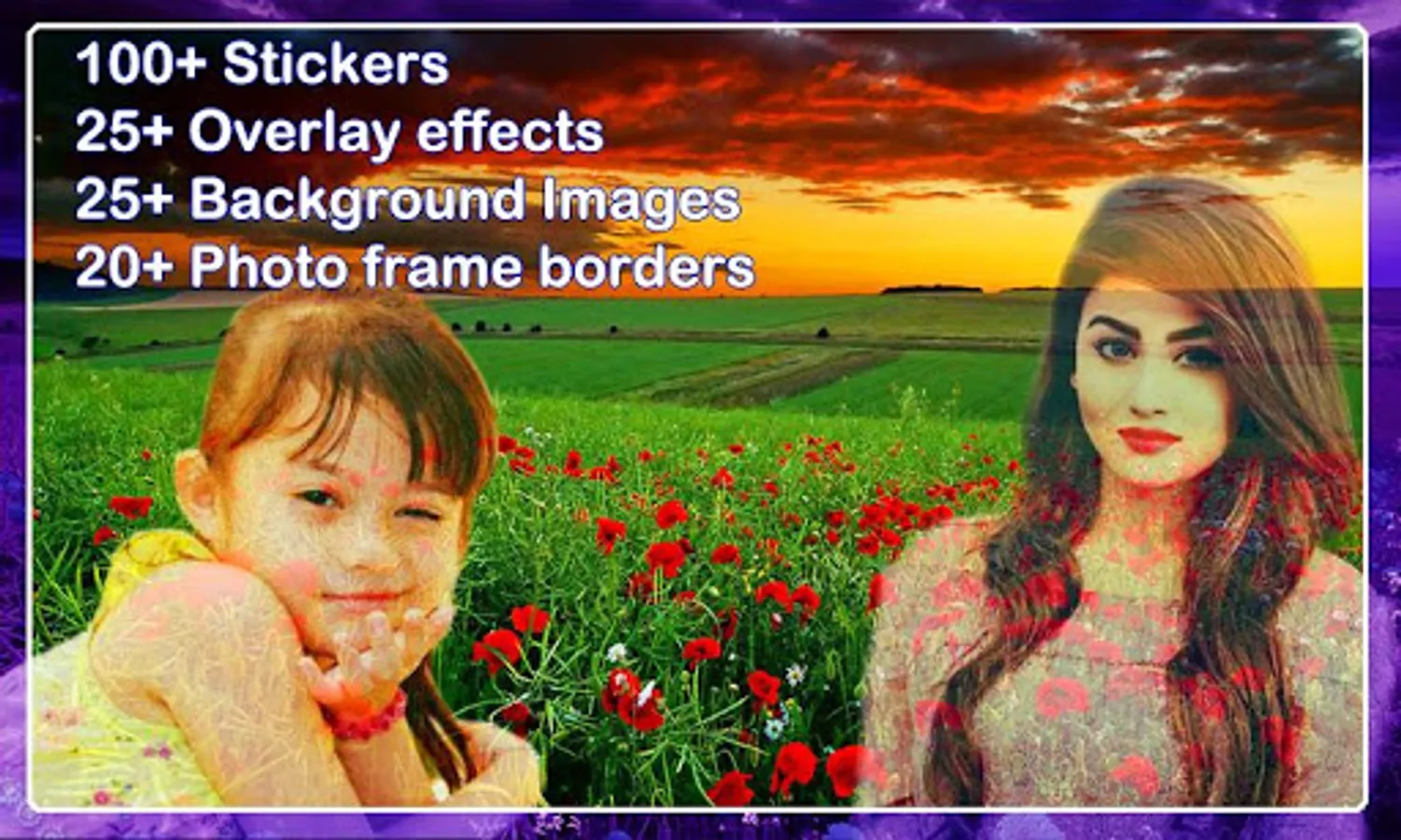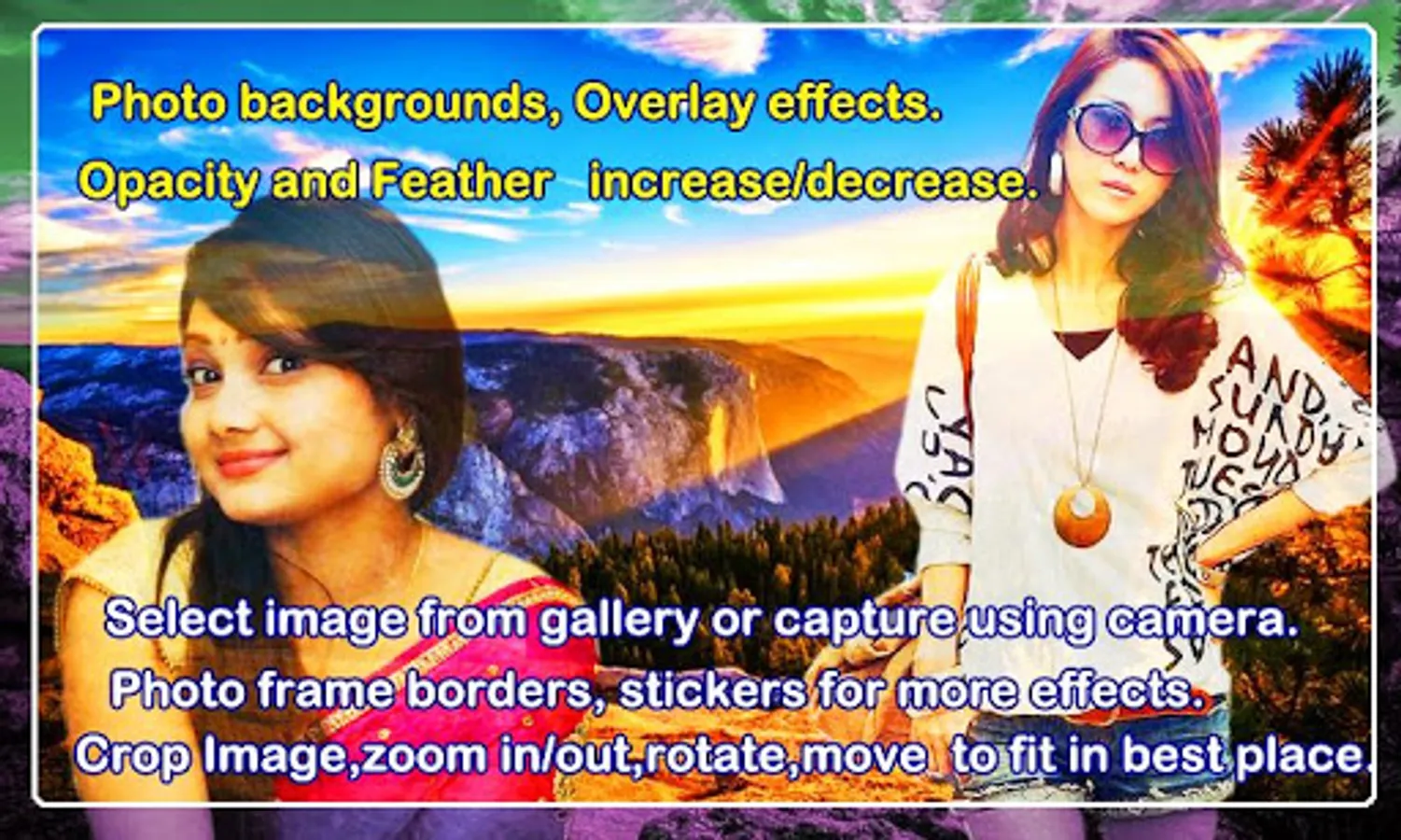 ♥With the Photo joint, you can make a stunning image of yours by mixing them into one using amazing backgrounds and many other features.