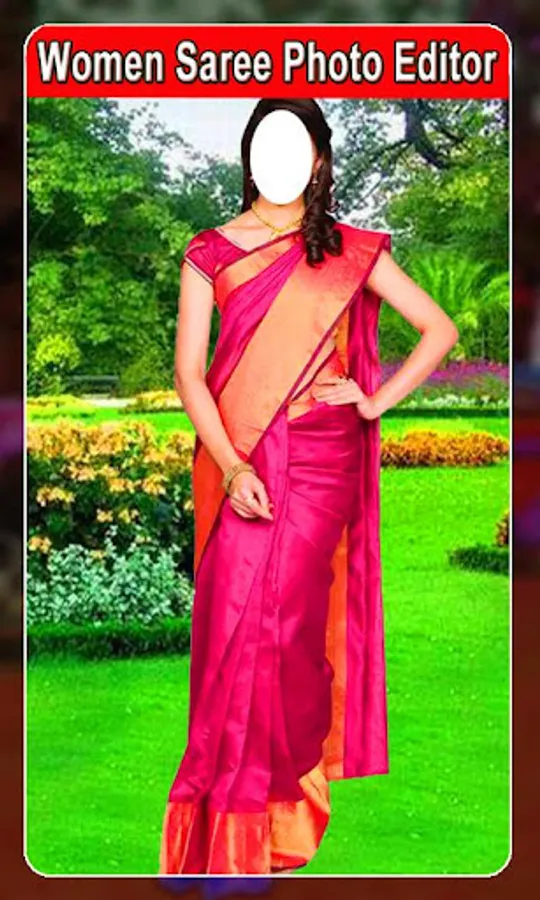 Women Sari Photo Editor app lets you try on different stylish collection and check on yourself. Just a single click and you can try wide variety of photo collection on you.