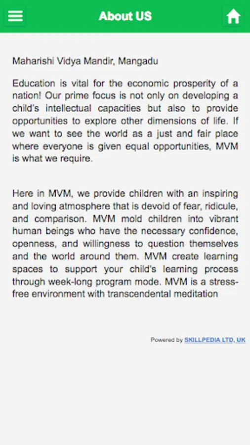 Maharishi Vidya Mandir, Mangadu. Education is vital for the economic prosperity of a nation! Our prime focus is not only on developing a child’s intellectual capacities but also to provide opportunities to explore other dimensions of life. If we want to see the world as a just and fair place where everyone is given equal opportunities, MVM is what we require.