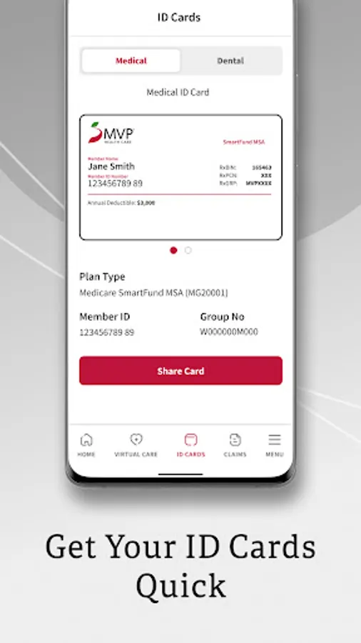 ID CARDS: View and share your MVP ID cards with doctors, family members, or anyone you wish.