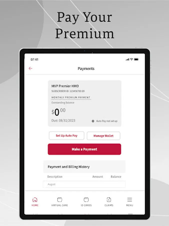 PAYMENTS AND BILLING HISTORY (NEW): Pay your premium, view your payment history, manage your wallet, and even set up Auto Pay so you never have to think about paying your premium again.