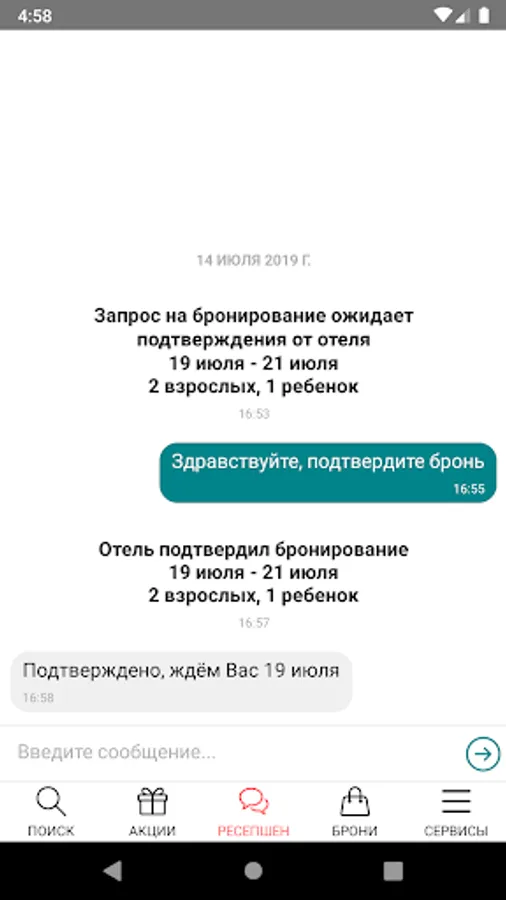 - chat with the hotel administrator in chat