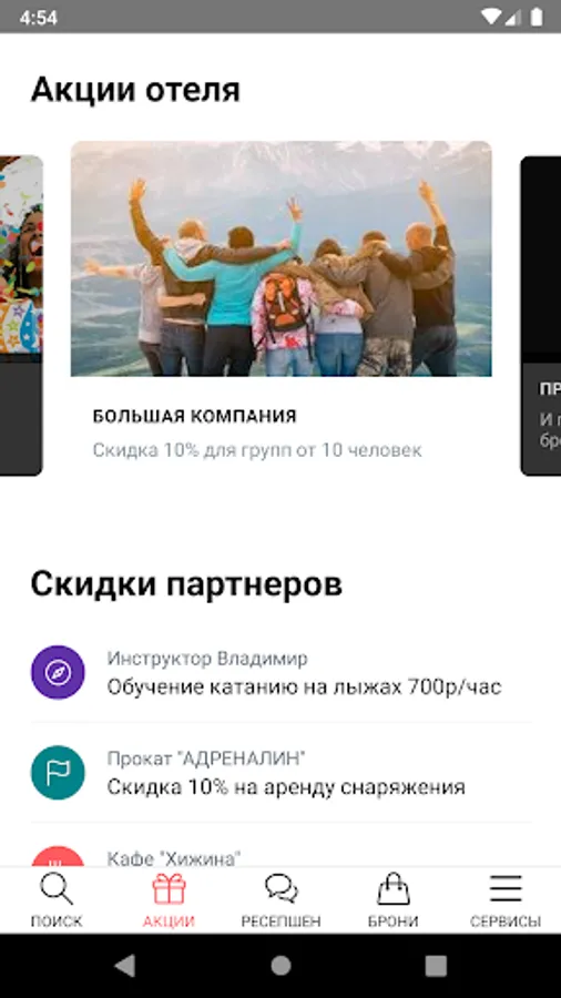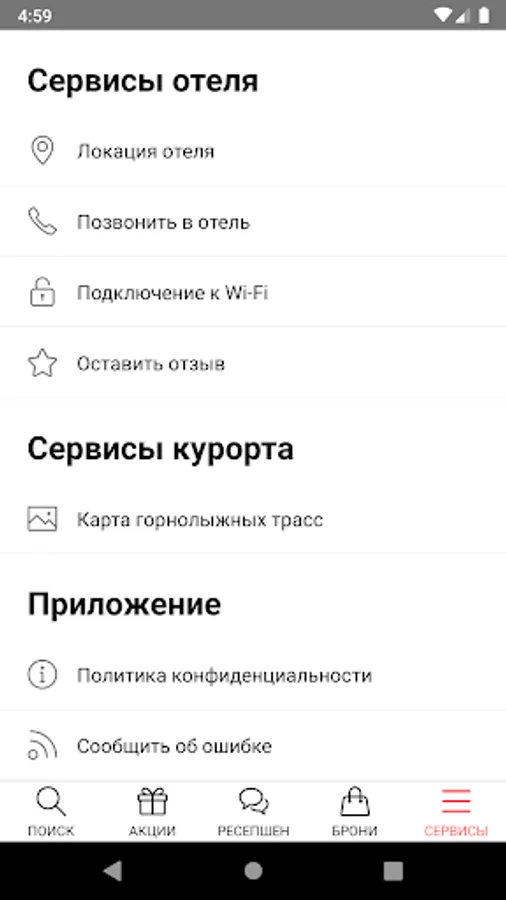 - get information about services and entertainment of the resort