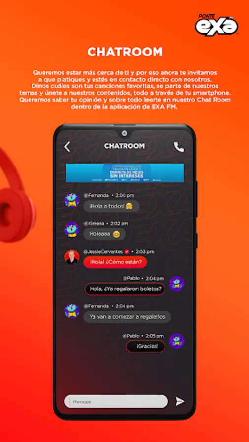 Listen to all the Exa FM stations in one place, chat directly with your favorite announcers, participate in live booth dynamics to win different prizes, download the podcasts of your favorite shows and much more. Listen to us everywhere and at any time.