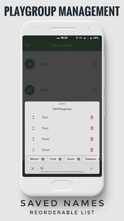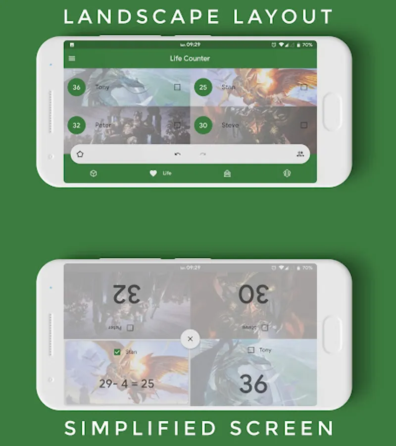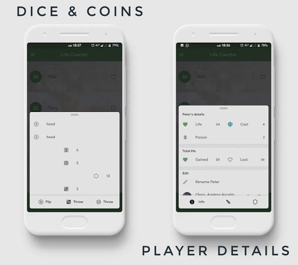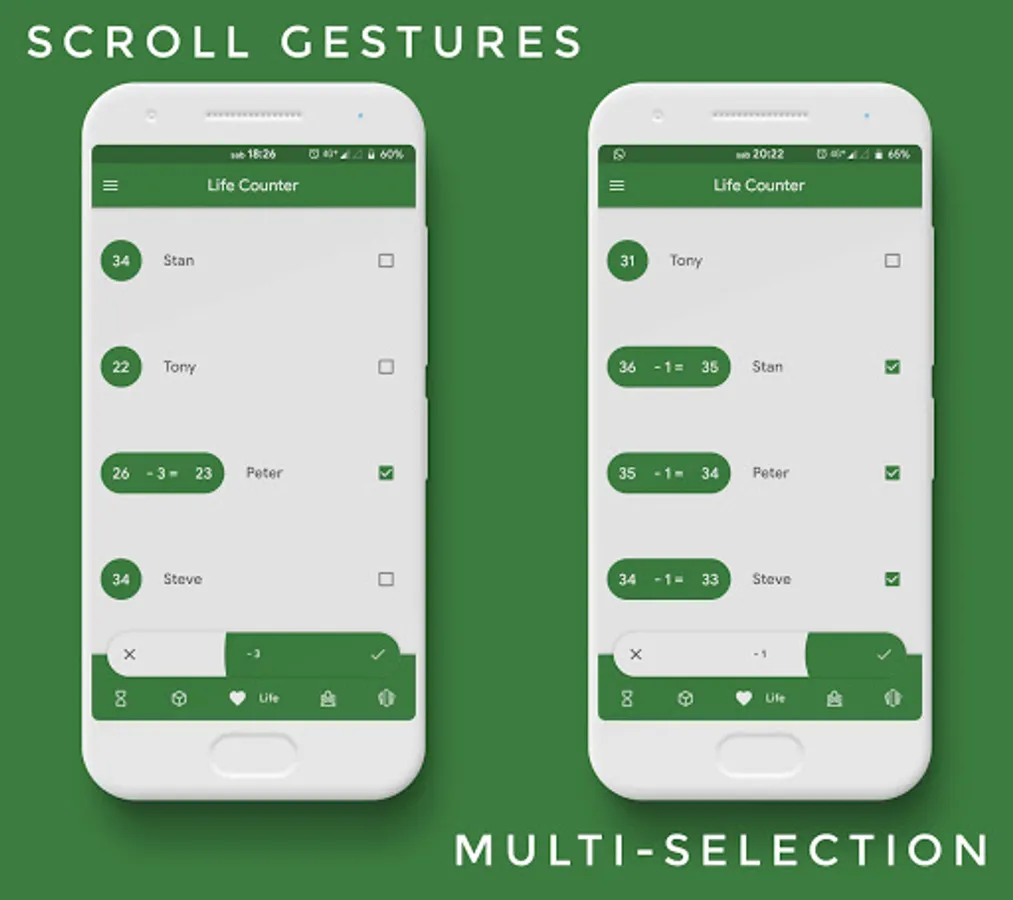 - Scroll Interaction: You can swipe over a player's name to increment or decrement their life or any other counter.