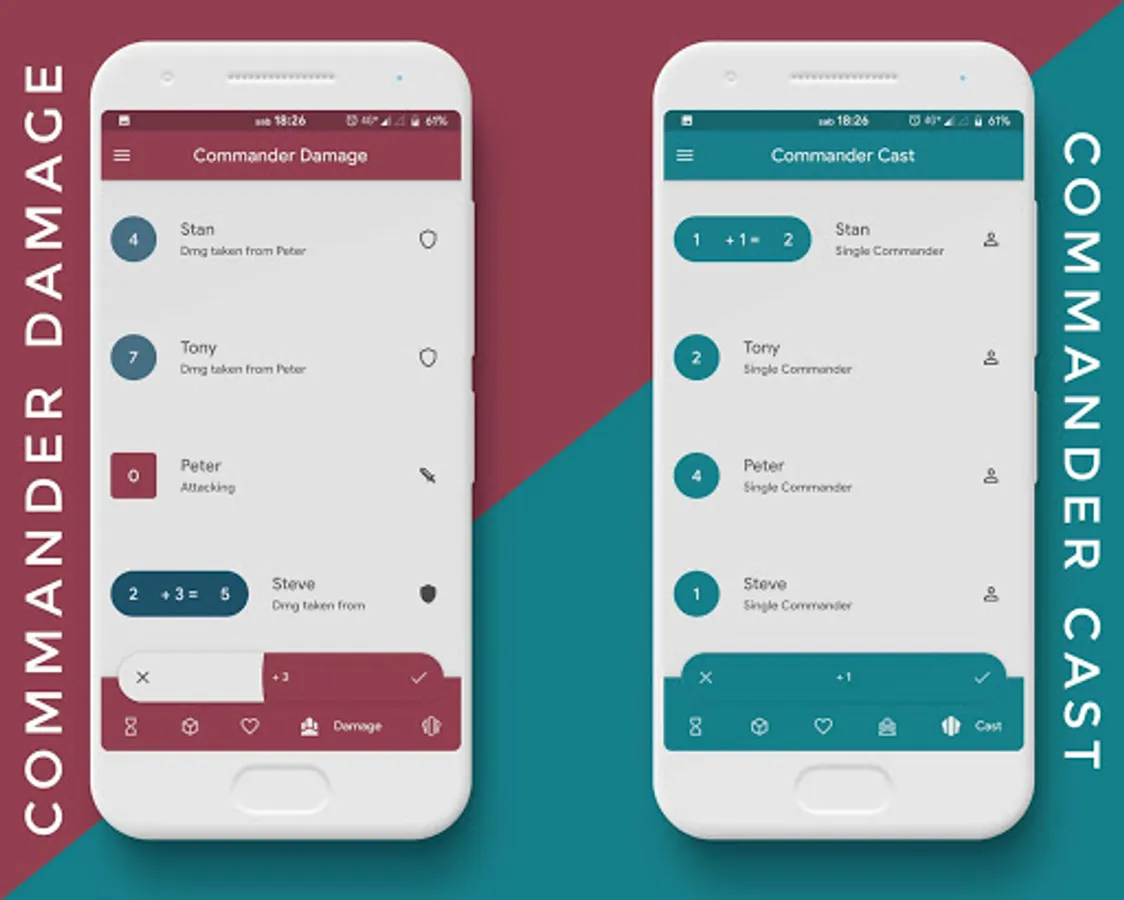 - Partner Commander Damage: You can easily split a player's commander in two partners and keep track of his two commanders damages and casts separately.