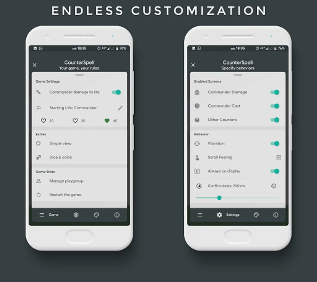 - Playgroup management: CounterSpell saves the names of your friends, so you can quickly change playgroup at any time.