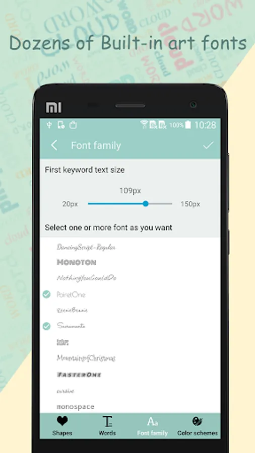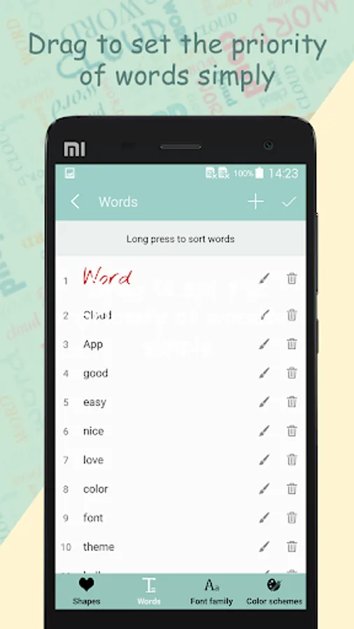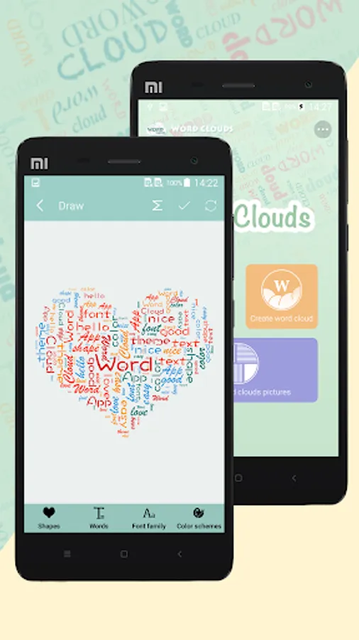 Poster mode: the app reduces the priority of your words in sequence and makes a Poster-style picture.